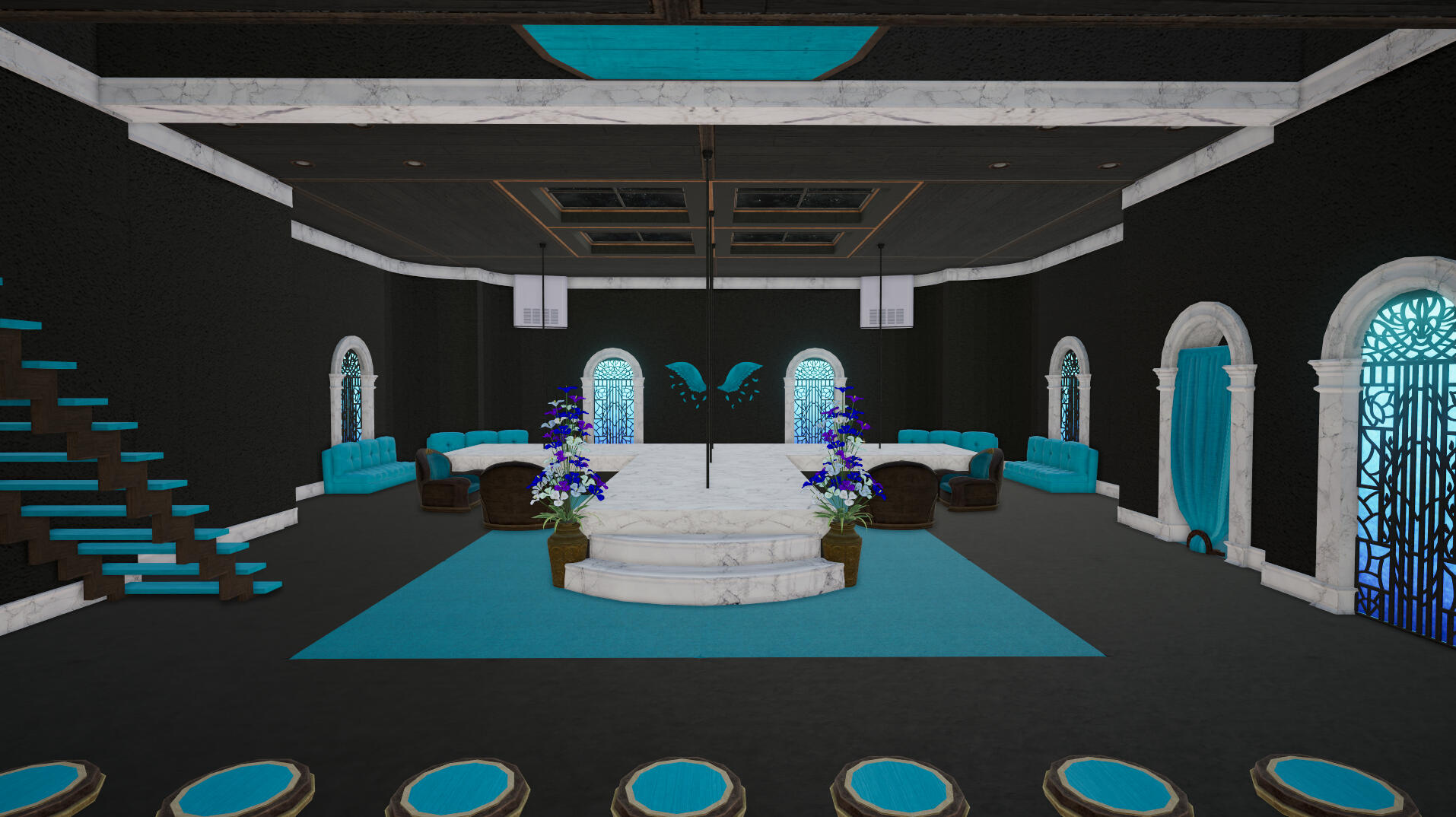 Then you will need to gather the furniture required for the design you wish to have set up and make sure to dye them. (Unless you've ordered with furniture service)